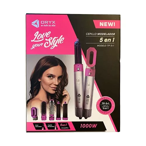 CEPILLO MODELADOR ORYX 5 EN 1 - 3 temp regulables (55°-80°-105°) - 5 accesorios intercambiables (Cepillo recto, cepillo brushing, buclera derecha, buclera izquierda, pre moldeado) - Efecto anti-frizz